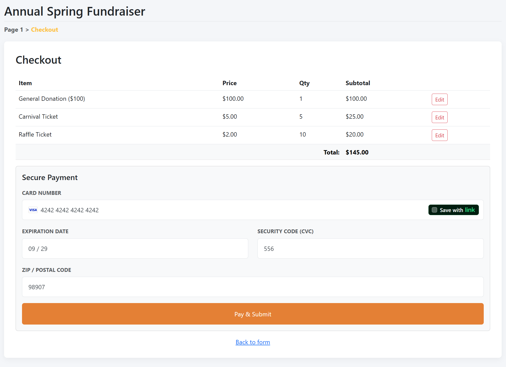 Drag, drop, and configure. Our builder makes it easy to create complex forms with payment integrations in minutes.