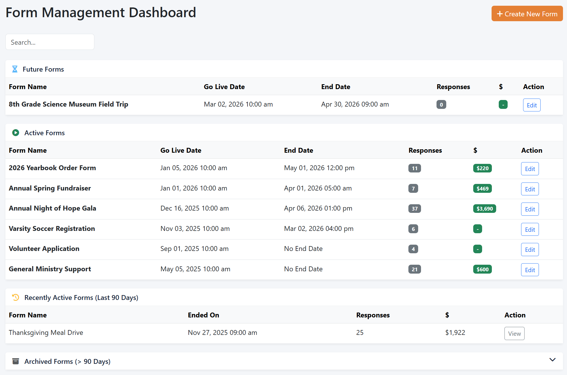 Schedule your forms to automatically "Go Live" and close at specific times, removing the need for manual monitoring.