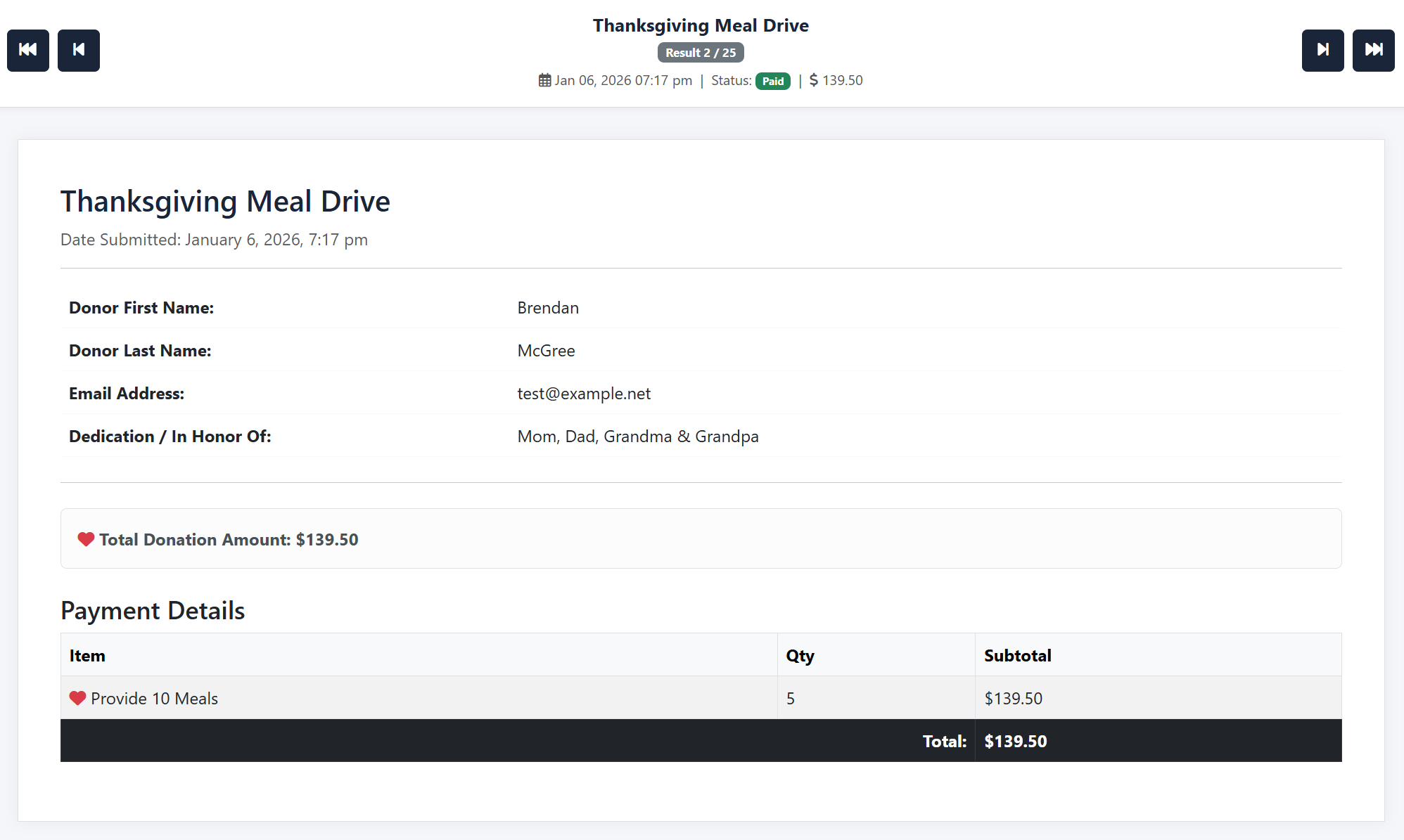 Automatically generate and email 501(c)(3) compliant tax donation receipts to your donors immediately upon submission.